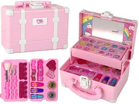 Różowy kuferek z kosmetykami to wyjątkowy zestaw, który zapewni niezwykłe doświadczenia związane z kreatywną zabawą i odkrywaniem świata makijażu. Znajduje się w nim szeroki wybór produktów, które umożliwiają tworzenie różnorodnych stylizacji. Zestaw zawiera 6 błyszczyków, które dodadzą uroczych kolorów i blasku, oraz 6 cieni do powiek, które pozwolą na eksperymentowanie z różnymi odcieniami i efektami na powiekach. Dodatkowo znajduje się w nim 6 róży do policzków oraz różowa szminka i błyszczyk. Aby dodać nieco blasku, znajdziemy w nim również dwa brokaty - złoty i srebrny, które można aplikować na różne partie twarzy lub ciała, nadając im efektowny wygląd. Pilniczek w kształcie serca jest idealny do pielęgnacji paznokci, a naklejki pozwalają na tworzenie unikalnych wzorów i dekoracji. Trzy lakiery do paznokci w kolorach niebieskim, fioletowym i różowym umożliwiają eksperymentowanie z różnymi odcieniami i tworzenie modnych stylizacji. Dodatkowo brokatowe separatory kosmetyczne pomogą precyzyjnie je pomalować. Zestaw zawiera także trzy pędzle, które pozwalają na nakładanie produktów i tworzenie różnych efektów. Ten uroczy, różowy kuferek pełni również funkcję mini toaletki, ponieważ zawiera w sobie praktyczne lusterko, które umożliwia dzieciom obserwowanie i doskonalenie swoich umiejętności makijażowych. Podaruj swojemu dziecku niezapomniane chwile zabawy, kreatywności i odkrywania własnego stylu! Elementy zestawu: - kuferek - 6 błyszczyków - 6 cieni do powiek - 6 róży do policzków - 2 brokaty - pilniczek - naklejki na paznokcie - 3 lakiery do paznokci - różowa szminka - błyszczyk - 3 pędzle - 2 separatory kosmetyczne Wymiary kuferka: 17 cm x 12 cm x 9 cm Wymiary opakowania: 17 cm x 12 cm x 9 cm osiada certyfikat CE, ponadto jest zgodny z normą EN71. Zabawka przeznaczona jest dla dzieci powyżej 5 roku życia.