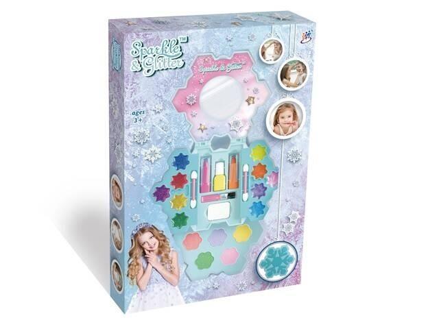 Zestaw do makijażu Śnieżynka, 3 poziomy. Niezbędnik każdej małej miłośniczki urody.