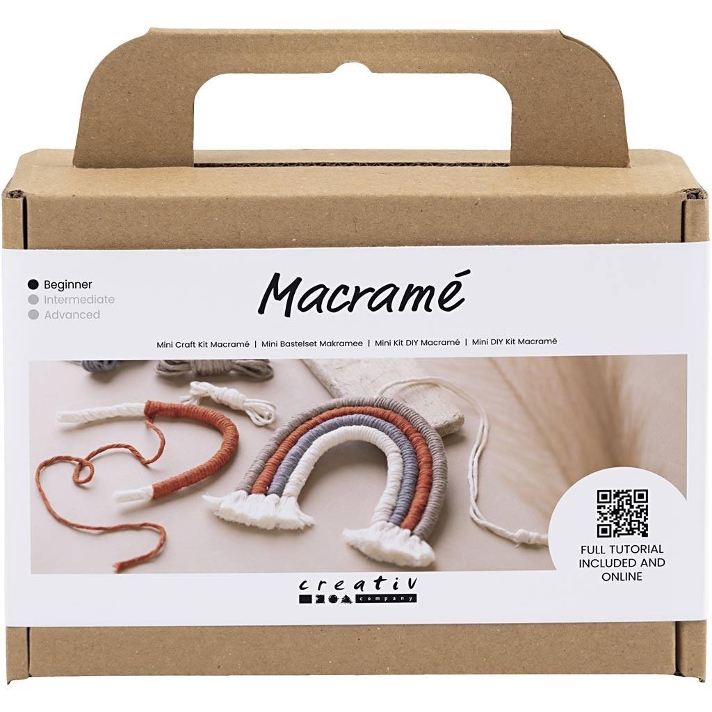 nJeśli chcesz nauczyć się tworzyć własną makramową tęczę, ten mini zestaw do majsterkowania jest dla Ciebie idealny. Owiń sznurek do makramy wokół liny i zakończ węzłem zbierającym. Na koniec zszyj łuki za pomocą igły i nici. Rezultatem jest piękna tęcza, którą można wykorzystać do dekoracji domu. Znajdź instrukcje z tyłu pudełka lub zeskanuj kod QR i postępuj zgodnie z instrukcją online.