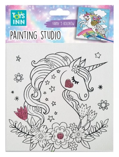 Canvas do pomalowania to doskonały pomysł na kreatywne spędzenie wolnego czasu. W zestawie znajduje się podobrazie o wymiarach 15x15 cm, pędzel, farby w 5 kolorach: białym, żółtym, różowym, niebieskim i zielonym.