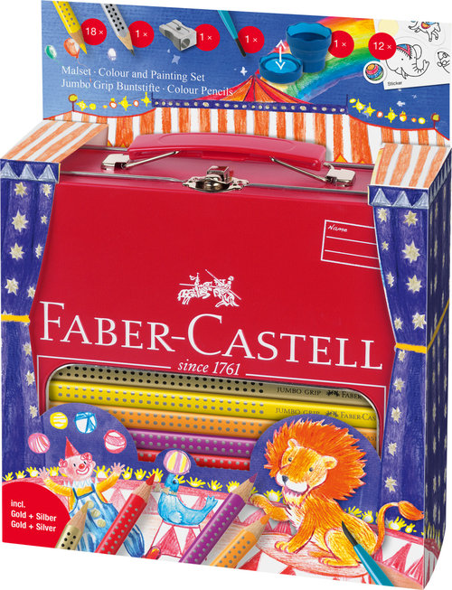 Opakowanie Zestaw Do Malowania I Rysowania Jumbo Grip W Walizce Metalowej Circus Faber-Castell