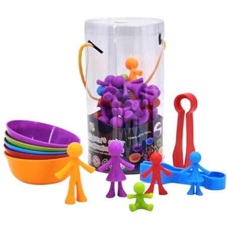 Gra polega na wykonywaniu precyzyjnych ruchów i skupieniu się na dopasowywaniu kolorów. Na początku, wysypujemy wszystkie figurki na stół, a następnie, układamy 6 kubeczków w różnych kolorach, tworząc miejsce docelowe dla naszych postaci. Dziecko otrzymuje specjalny chwytak, którym będzie mogło chwytać i przenosić figurki do odpowiednich kubeczków. Celem gry jest umieszczenie każdej figurki w kubeczku o identycznym kolorze. To wymaga od dziecka skupienia, koordynacji ruchowej i umiejętności rozpoznawania kolorów.