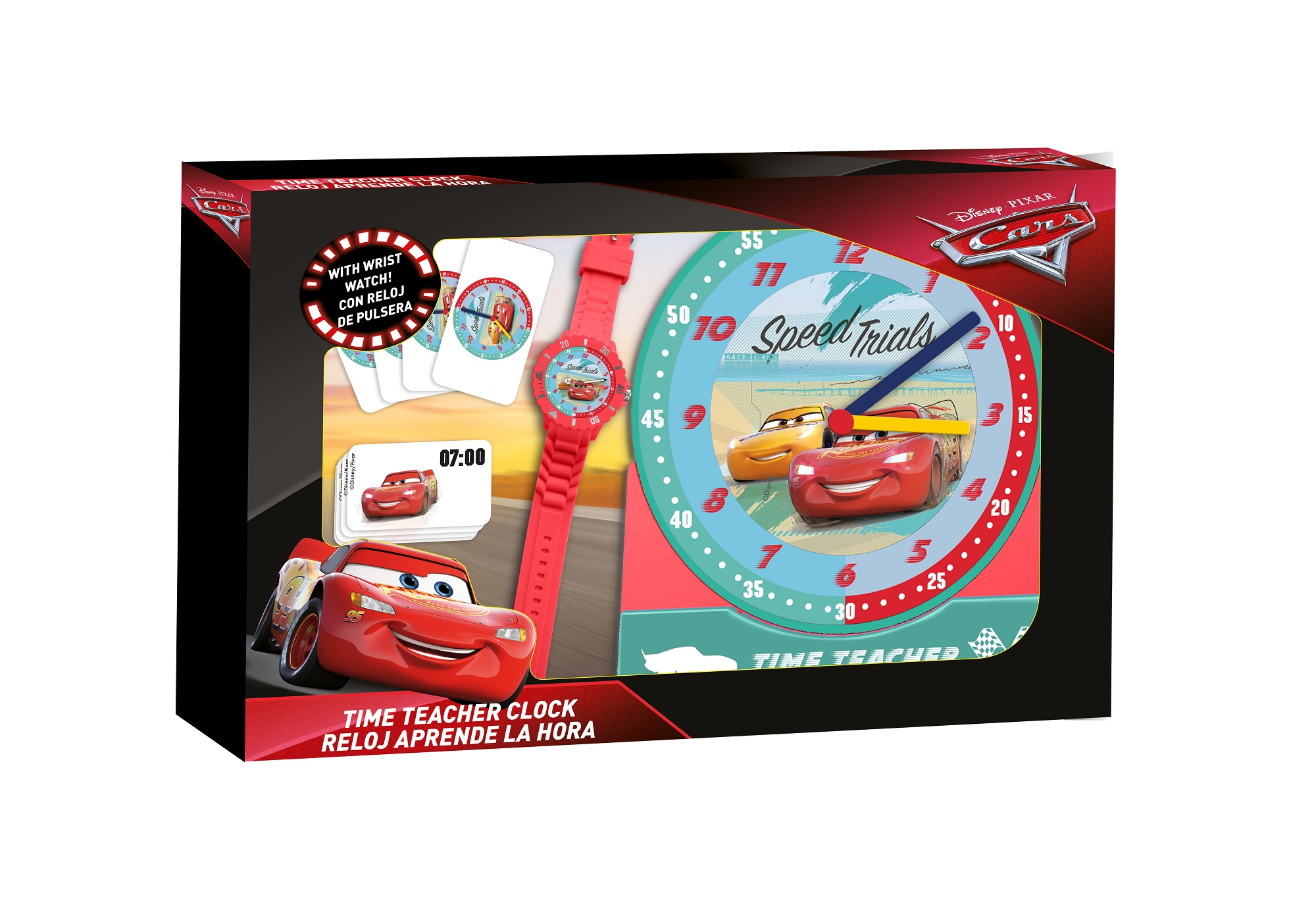 Zestaw z zegarkiem Cars , zegarem do nauki i kartami do gry to doskonały komplet , który pomoże Tobie i dziecku odkrywać tajniki „czasu”.