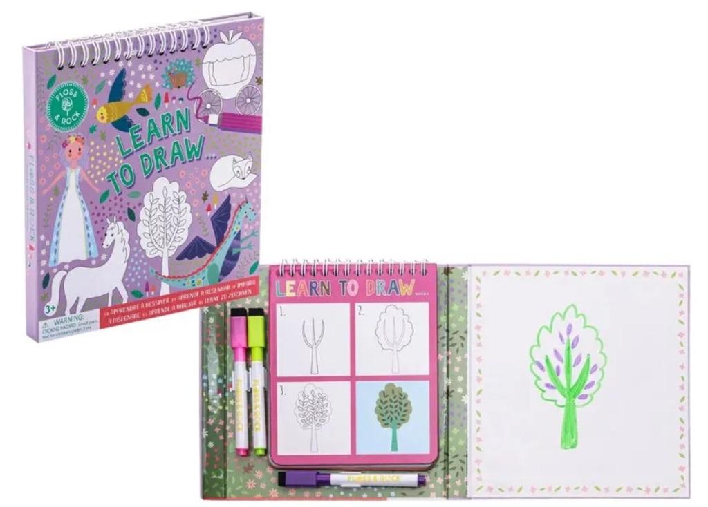 Wspaniały zestaw do nauki rysowania dla dzieci w prosty i zabawny sposób zachęci dziecko do rozpoczęcia przygody z nauką rysowania. Zestaw zawiera 8 grubych, błyszczących stron, 3 kolorowe suchościeralne pisaki z gumkami oraz sekcję do rysowania i kolorowania. Sposób narysowania każdej ilustracji przedstawiony jest w trzech prostych krokach, dzięki czemu nauka rysowania będzie dla każdego malucha łatwa i przyjemna. Zmazywalne strony pozwalają trenować bez końca. Zestaw składa się na płasko, posiada praktyczne magnetyczne zamknięcie i idealnie sprawdzi się w podróży. Zapraszamy do zabawy!                                                                                                                     Cechy: