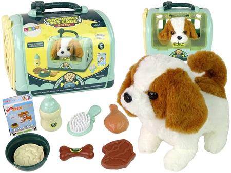 Zestaw do Opieki Nad Psem dla Dzieci Zielony To interaktywna zabawka, która przenosi dzieci w świat opieki nad zwierzętami. Głównym elementem zestawu jest uroczy piesek o delikatnym, biało- brązowym umaszczeniu. Jest zasilany dwoma bateriami AA, co pozwala na jego dynamiczne i realistyczne zachowanie. Po uruchomieniu, porusza się, wesoło szczeka i merda ogonkiem, wzbudzając u dzieci radość i zainteresowanie. W zestawie znajdują się również wszystkie potrzebne akcesoria takie jak: karma, miseczka, mięso, kurczak, kość, butelka oraz szczotka. Maluchy mogą poczuć się jak właściciel tego słodkiego pupila. Piesek jest umieszczony w zielonej klatce, którą można otwierać i zamykać. Ta praktyczna funkcja dodaje realizmu i pozwala dzieciom na interakcje z zabawką. Ma ona również wygodny uchwyt, dzięki czemu Wasze pociechy mogą ją zabrać ze sobą wszędzie! Cała zabawka została wykonana z trwałego plastiku. Wymiary pieska wynoszą: 17 cm x 15 cm x 12 cm, natomiast klatki: 23,5 cm x 18 cm x 17,5 cm. To doskonały sposób na rozwijanie kreatywności oraz empatii! Elementy zestawu: - piesek - klatka - karma - miska - mięso - kurczak - kość - butelka - szczotka Wymiary pieska: 17 cm x 15 cm x 12 cm Wymiary klatki: 23,5 cm x 18 cm x 17,5 cm Wymiary opakowania: 23,5 cm x 18 cm x 17,5 cm Posiada certyfikat CE, ponadto jest zgodny z normą EN71. Zabawka przeznaczona jest dla dzieci powyżej 3 roku życia.