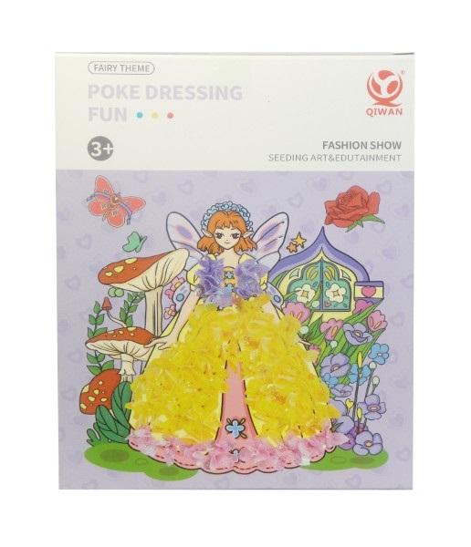 Kolorowe wizerunki elfów, których sukienki można przyozdobić, kolorowymi materiałami załączonymi do zestawu. Produkt zapakowany w kartonowe opakowanie. Podane wymiary są wymiarami opakowania. Produkt dla dzieci od 3 lat.