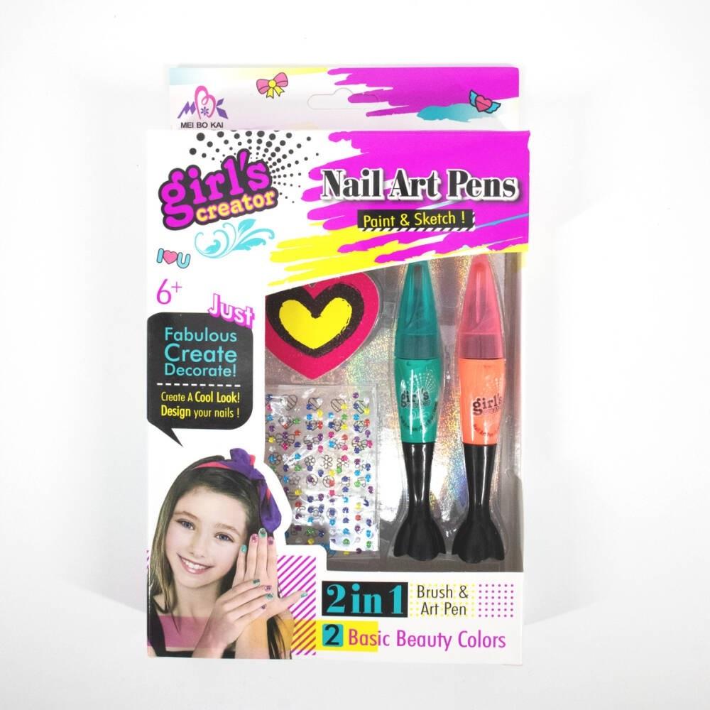 Zestaw do ozdabiania paznokci, który zawiera: 2 lakiery, pilniczek, naklejki na paznokcie. Produkt nie potrzebuje baterii. Zabawka przeznaczona dla dzieci powyżej 3 roku życia.