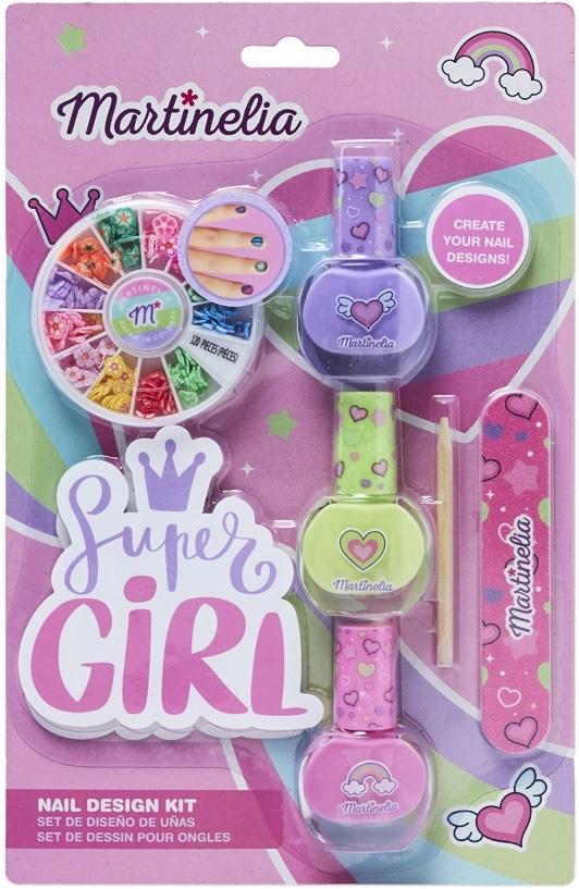 Zestaw dla dzieci zawiera: 3 lakiery do paznokci, ozdoby na paznokcie w pudełku, pilniczek.