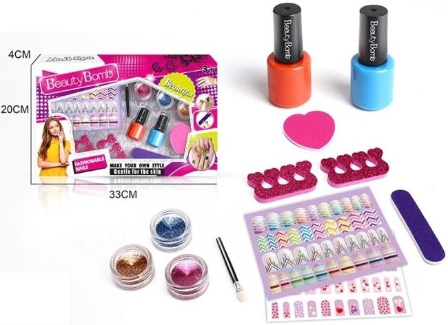 Kreatywny zestaw do stylizacji paznokci Beauty Bomb to kompletny salon piękności zamknięty w jednym pudełku. Został zaprojektowany z myślą o dzieciach, które uwielbiają naśladować dorosłych i eksperymentować z wyglądem. W skład zestawu wchodzą dwa intensywne kolory lakierów, pomarańczowy i niebieski, które stanowią doskonałą bazę dla każdej stylizacji. Aby nadać paznokciom wyjątkowego blasku, do dyspozycji są trzy słoiczki z kolorowym brokatem oraz specjalny pędzelek do ich precyzyjnego nakładania.