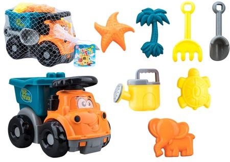 Zestaw Zabawek Do Piasku Wywrotka Foremki Konewka Pomarańczowy Zestaw zabawek do piasku z wywrotką to idealny komplet dla małych budowniczych. Wywrotka, utrzymana w intensywnym pomarańczowym kolorze, posiada pojemny kontener, który świetnie sprawdza się do transportowania piasku czy innych zabawek z zestawu. Dzieci mogą łatwo przewozić piasek, tworząc różne budowle i konstrukcje, co rozwija ich wyobraźnię i umiejętności manualne. W skład zestawu wchodzą również cztery foremki, łopatka, grabki oraz konewka. Foremki umożliwiają tworzenie różnorodnych piaskowych figur, natomiast łopatka i grabki są niezbędne do kopania, przesiewania i formowania piasku. Konewka dodaje zabawie dodatkowy wymiar, pozwalając dzieciom na podlewanie swoich piaskowych konstrukcji. Cały zestaw utrzymany jest w jaskrawych, przyciągających uwagę kolorach, co stymuluje zmysły dziecka i zachęca do zabawy. Wszystkie elementy są wykonane z solidnych i trwałych materiałów, zapewniając bezpieczeństwo i długotrwałe użytkowanie. Zestaw zabawek do piasku z wywrotką to doskonały wybór na plażę czy do piaskownicy, oferujący niekończące się możliwości kreatywnej i rozwijającej zabawy. Wymiary wywrotki: 30cm x 21cm x 18cm Wymiary łopatki: 19,5cm x 6,5cm Wymiary grabek: 17cm x 8,5cm Wymiary opakowania: 30cm x 27cm x 18cm Posiada certyfikat CE, ponadto jest zgodny z normą EN71. Przeznaczony dla dzieci powyżej 3 roku życia.
