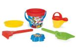 Komplet do piasku z Paw Patrol składający się z 6 elementów w klasycznych kolorach spodoba się wszystkim miłośnikom twórczej zabawy w piasku. W skład zestawu wchodzą: okrągłe wiaderko, łopatka, grabki, sitko, konewka i 1 foremka. Poszczególne elementy posiadają ciekawą grafikę wykonaną metodą IML. Dzięki temu wytrzyma ona kontakt z wodą i słońcem. Całość wyprodukowana z nietoksycznych, bezpiecznych i wytrzymałych materiałów.