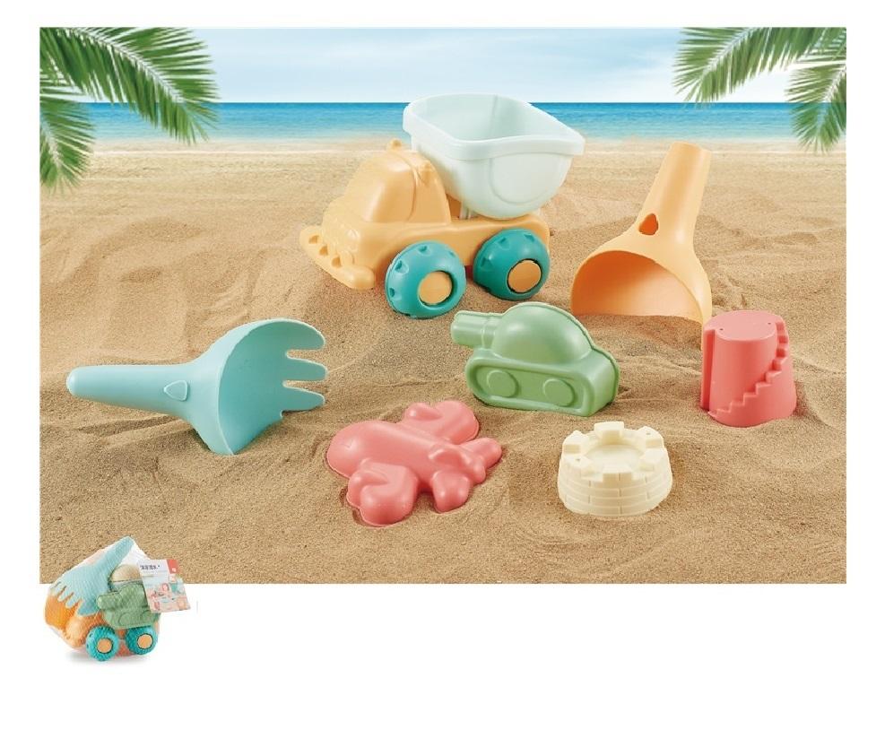 Zestaw do piasku, idealnie nadający się także na basen, do ogrodu, łazienki. Zestaw zawiera 4 foremki, autko, grabki oraz łopatkę. Wysoka jakość produktu.