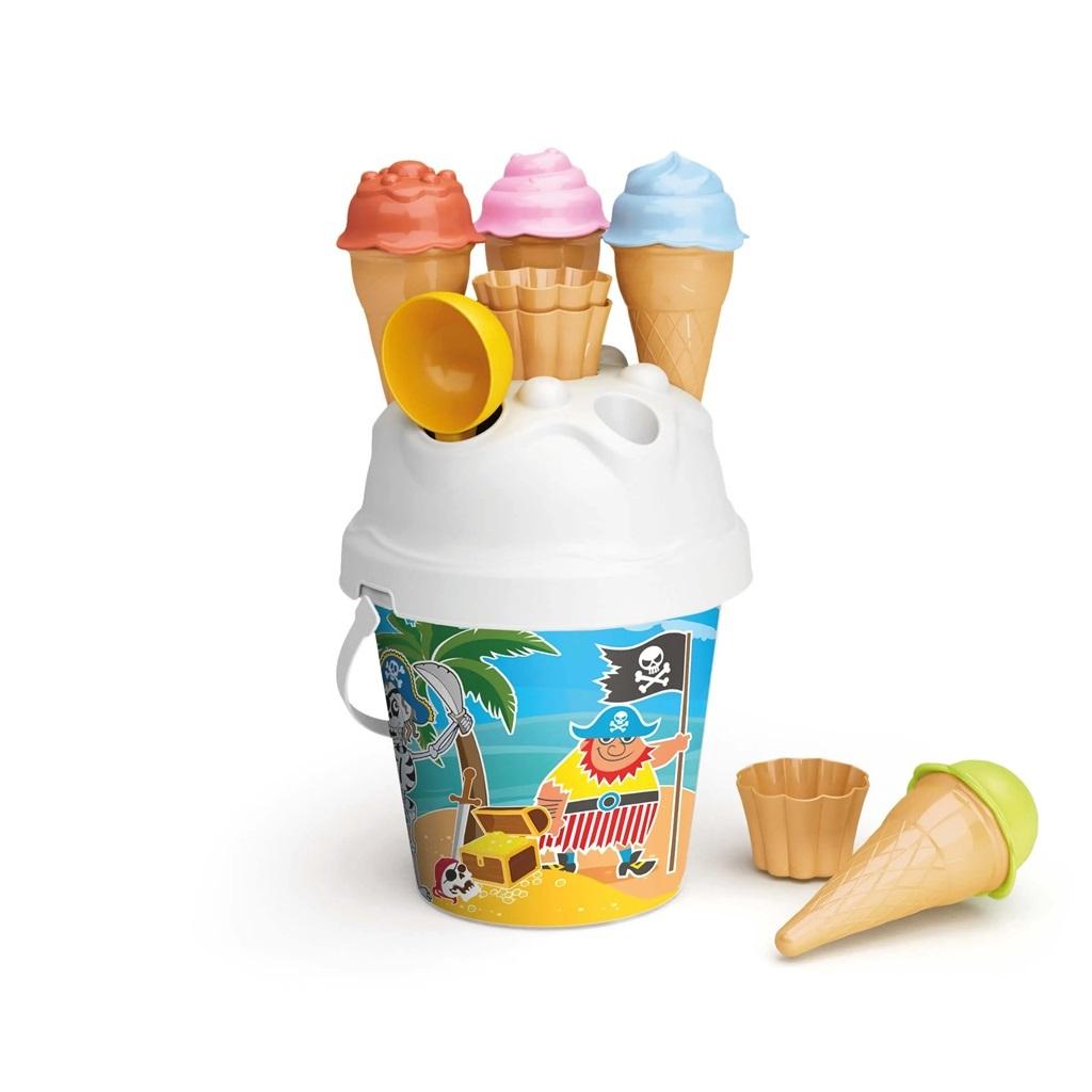 Zestaw do piasku Piraci z Lodami może posłużyć do budowania zamków, twierdzy czy fortecy ale również można stworzyć z niego własną lodziarnię o której marzy nie jedno dziecko. Maluchy z pewnością wykorzystają ten zestaw w 100%! Dzięki starannie wykonanym foremkom, utworzone w piasku babeczki oraz rożki lodowe zachwycają idealnymi kształtami.