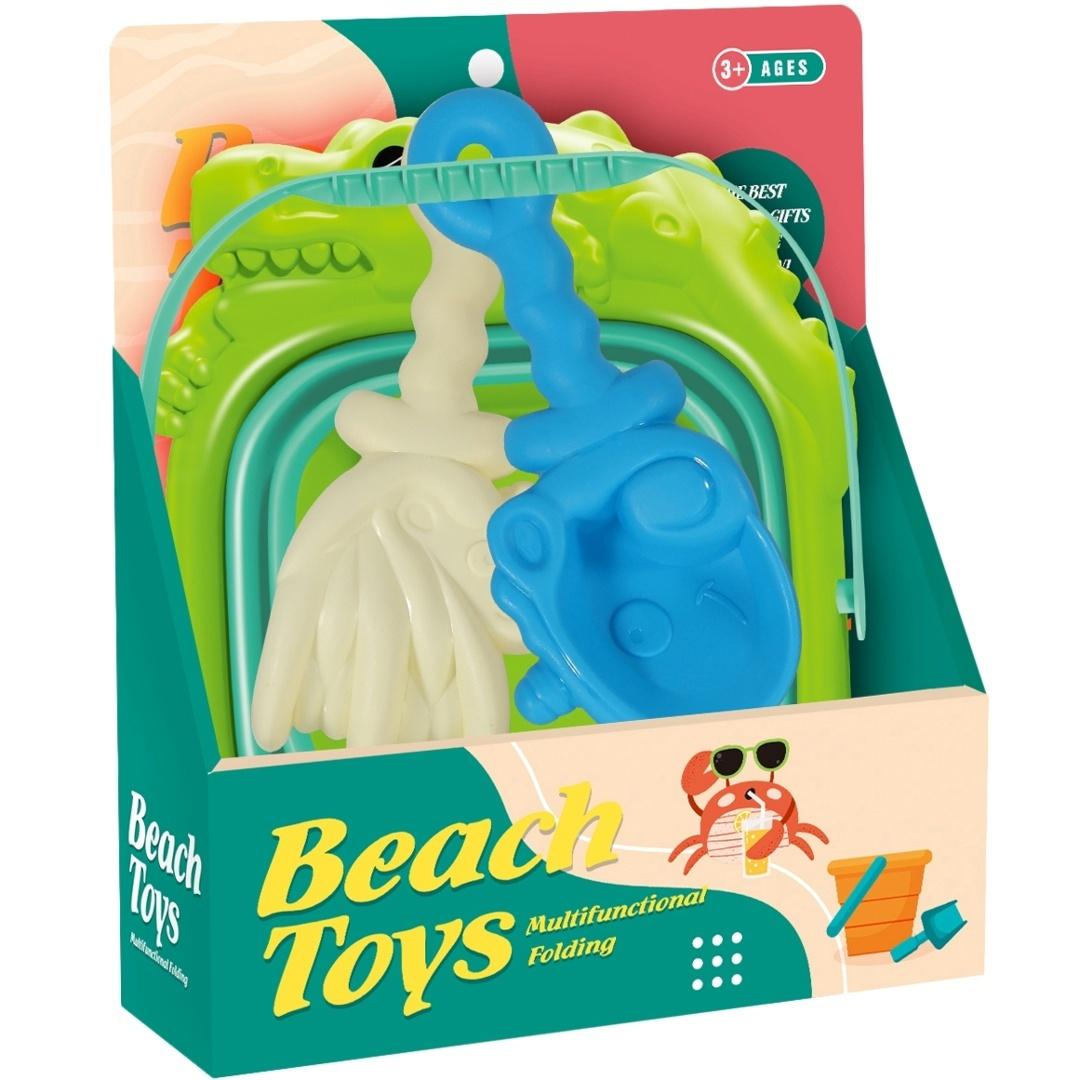 Składany Zestaw Plażowy 3w1 - Wesoły Dino (Wiaderko, Łopatka i Grabki)
