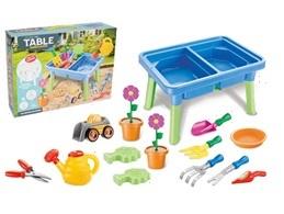 Zestaw do zabawy z piaskiem i wodą, Mini Ogród, stolik + akcesoria 17 el., rozm. 45,5x32x11 cm