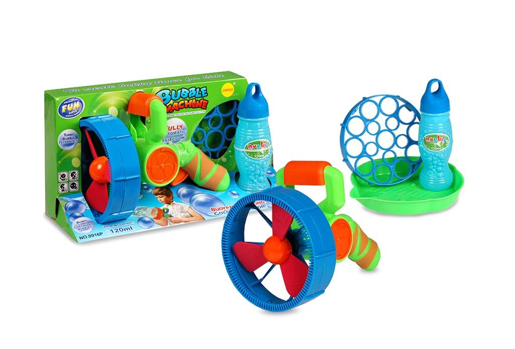 Wesoły, kolorowy wiatrak to prawdziwa maszyna do dużych baniek.