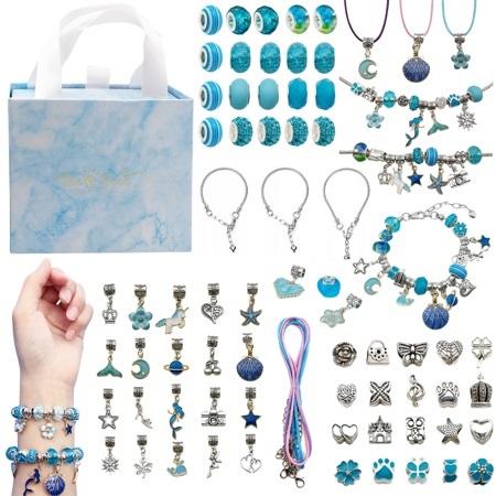 Podaruj swojemu dziecku niezapomniane chwile kreatywnej zabawy z zestawem do tworzenia naszyjników i bransoletek charms! Ten uroczy zestaw to idealny sposób na rozwijanie wyobraźni i zdolności manualnych, umożliwiając tworzenie unikalnych, osobistych ozdób. Zestaw zawiera różnorodne zawieszki, koraliki i charmsy, dominujące w pięknym niebieskim kolorze, co pozwala na tworzenie wspaniałych, harmonijnych kompozycji.