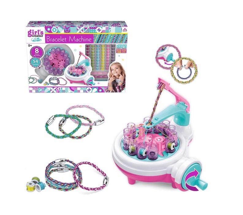 Możliwość zrobienia 8 bransoletek, 54 szpulki kolorowych nici, zapięcia.