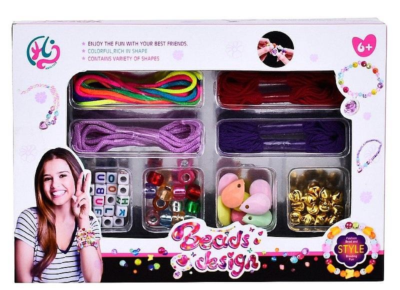 zestaw do robienia bransoletek, sznurki, koraliki; 14x20x3,5cm BOX