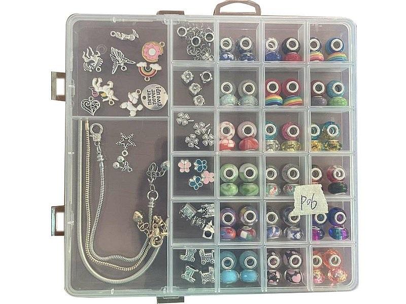 zestaw do robienia bransoletek - charms, koraliki, aplikacje, w ozdobnym pudełku; 20x19x2cm, PPB