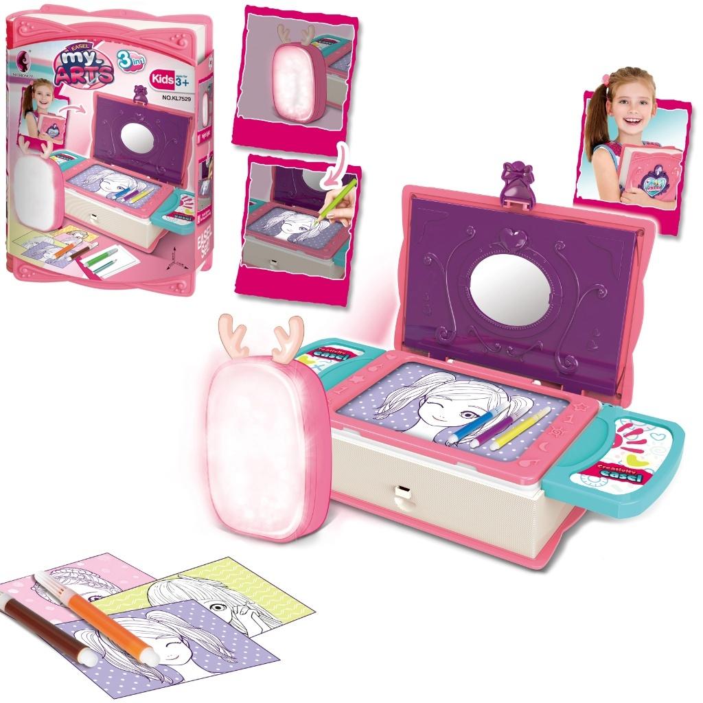 Kreatywny Kuferek do Rysowania - Zestaw Artystyczny z Lampką Nocną - My Easel Rozbudź kreatywność swojego dziecka dzięki temu wszechstronnemu zestawowi artystycznemu! Kreatywny kuferek do rysowania "My Easel" to idealny prezent dla małych artystów, którzy uwielbiają tworzyć. Ten bogaty zestaw zawiera wszystko, czego potrzebuje Twoje dziecko, aby wyrazić swoją wyobraźnię i rozwijać umiejętności plastyczne. Dodatkowo, kuferek wyposażony jest w lampkę nocną, która umili wieczorne sesje artystyczne. Zalety produktu: Wszechstronny zestaw: Kuferek zawiera różnorodne akcesoria do rysowania i malowania, takie jak kredki, farby, pędzle, papier i wiele innych. Kreatywna zabawa: Zestaw stymuluje wyobraźnię i kreatywność dziecka, zachęcając do tworzenia własnych dzieł sztuki. Rozwija zdolności manualne: Rysowanie i malowanie pomaga w rozwijaniu koordynacji wzrokowo-ruchowej i sprawności manualnej. Lampka nocna: Wbudowana lampka nocna umila wieczorne sesje artystyczne i dodaje klimatu. Praktyczny kuferek: Kuferek ułatwia przechowywanie i transportowanie zestawu, dzięki czemu dziecko może zabrać go ze sobą wszędzie. Bezpieczne materiały: Zestaw wykonany jest z bezpiecznych dla dzieci materiałów. Idealny na prezent: Doskonały pomysł na prezent dla dzieci powyżej 3 roku życia. Specyfikacja: Nazwa: My Easel Numer katalogowy: KL7529 Wiek: 3+ Wymiary kuferka: 23x6x17cm Kreatywny kuferek do rysowania "My Easel" to doskonały sposób na rozwijanie pasji artystycznych Twojego dziecka. Zapewnij mu godziny kreatywnej zabawy!