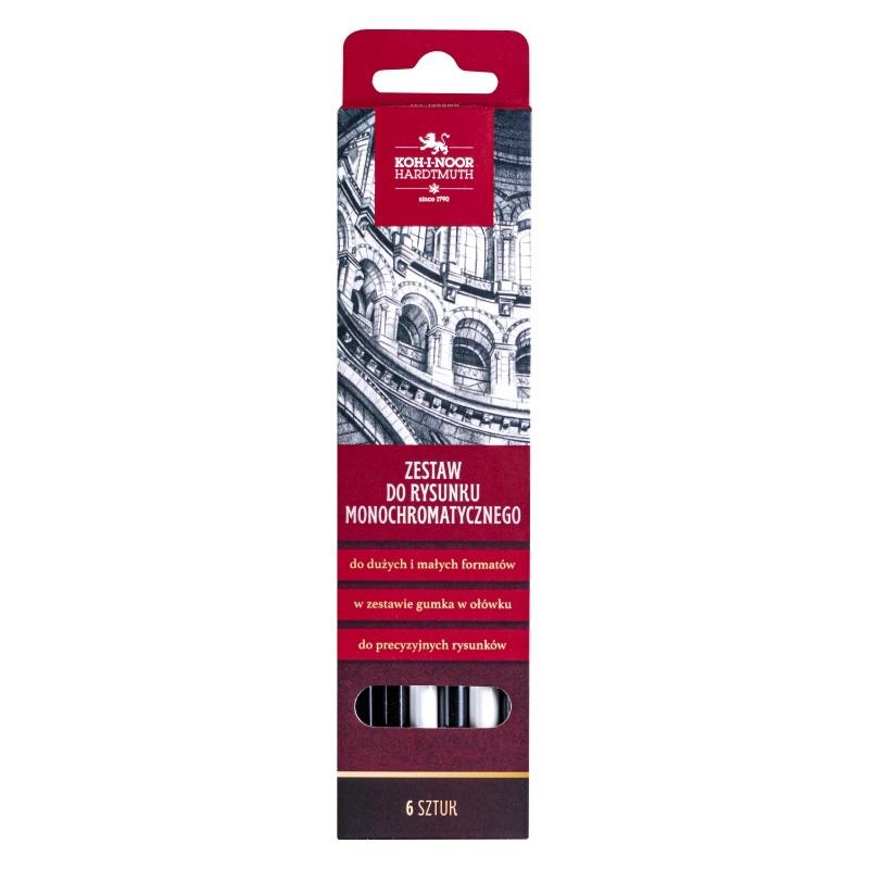 Zestaw przeznaczony do rysunku czarno-białego, do większych i mniejszych formatów. Zawiera węgiel, ołówki, pastel oraz gumkę. Wszystkie media w zestawie są odpowiednio dobrane kolorystycznie (czerń i biel). Dzięki temu, że są dostępne w drewnianych oprawkach, możliwa jest precyzyjna praca. W zestawie dostępna jest także gumka w ołówku, co umożliwi precyzyjną korektę.