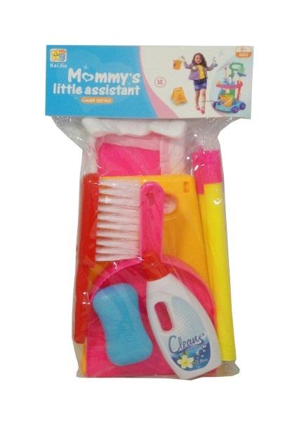 Zestaw do sprzątania dla małych porządnickich. W zestawie m. in. mop, szufelka, zmiotka, mydło, płyn. Produkt zapakowany w przezroczysty worek. Zabawka dla dzieci od 3 lat. Podane wymiary są wymiarami opakowania.
