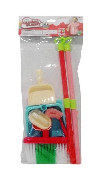 Zestaw do sprzątania dla małych porządnickich. W zestawie m.in.: miotła, szufelka, zmiotka, gąbka, mydło. #&Produkt zapakowany w przezroczysty worek.#&Zabawka dla dzieci od 3 lat. #&Podane wymiary są wymiarami opakowania.