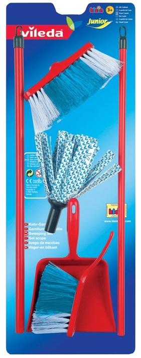 Zestaw do sprzątania powstał na licencji firmy Vileda i składa się z miotły na kiju, zmiotki i szufelki, oraz mopa paskowego. Miotła i mop mają około 55 cm wysokości, a charakterystyczne dla koloru marki biało-niebieskie włosie miotły i zmiotki jest na tyle gęste i trwałe, że spokojnie nadaje się do robienia prawdziwych porządków. Zarówno miotła jak i zmiotka przydaje się świetnie do sprzątania drobnych klocków, czy niewielkich domowych porządków w dziecięcym pokoju. Zestaw zawiera także mop z paskami w kolorze niebieskim, którym z powodzeniem podczas zabawy możemy umyć podłogę. Od prawdziwych akcesoriów odróżnia je tylko wielkość dostosowana dla dzieci. Bawiąc się w sprzątanie domu, dzieci zapoznają się z dorosłymi zadaniami, ćwiczą motorykę i rozwijają swoją wyobraźnię.