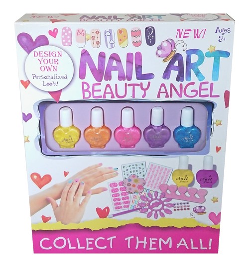 Zestaw do stylizacji paznokci zawiera pięć kolorów lakieru, przekładki, tipsy, naklejki, samoprzylepne kamyki. Dla dzieci w wieku od 3 lat.
