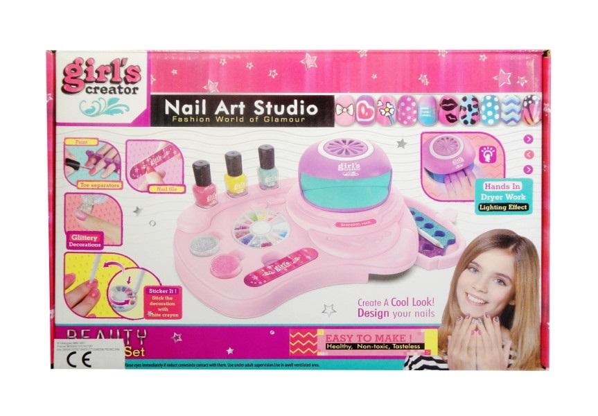 Kolorowy zestaw do stylizacji paznokci. Zestaw zawiera: suszarkę do paznokci, 3 kolorowe lakiery do paznokci, pilniczek, separatory, 2 brokaty, cekiny oraz naklejki do paznokci. Pozwól dziecku rozwinąć kreatywność aby mogło stworzyć na paznokciach oryginalną stylizację. Zabawka działa na baterie typu AA. Baterie nie są załączone. Produkt zapakowany w kartonowe opakowanie. Podane wymiary są wymiarami opakowania.