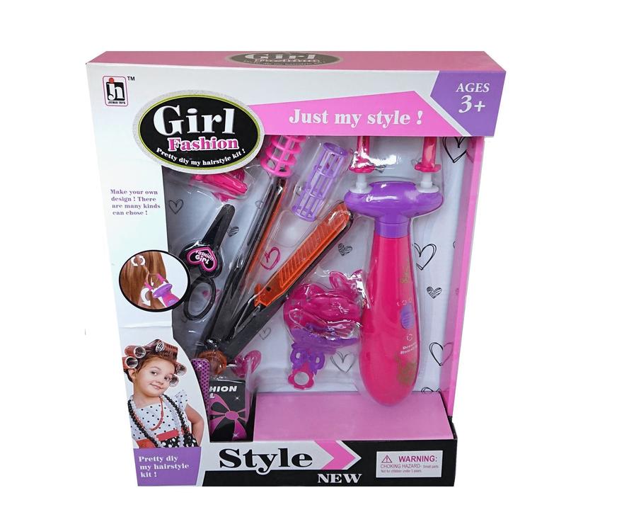 Zestaw do zabawy w stylizację włosów z lokówką na baterie i kompletem akcesoriów. Dla dzieci w wieku od 3 lat.