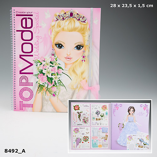 Zestaw kreatywny Wedding Special TOPModel, do tworzenia pięknych sukien ślubnych, 40 kartek, w zestawie znajdują się szablony, naklejki oraz ozdobne papiery.