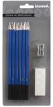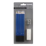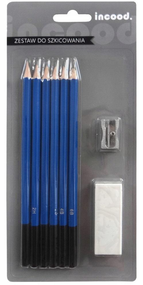 Zestaw do szkicowania zawierający 6 szt. ołówków o różnej miękkości, temperówkę oraz gumkę.