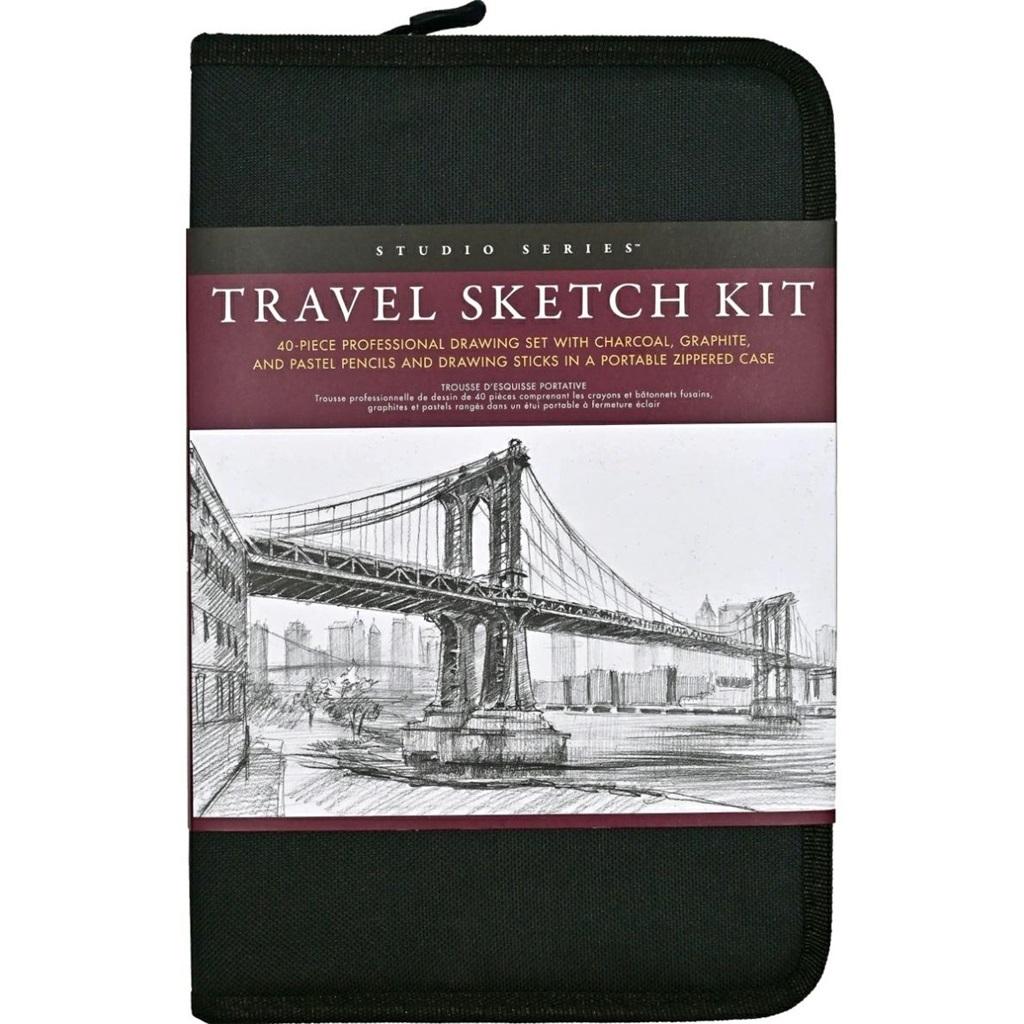 Duży zestaw do szkicowania w etui marki Peter Pauper Press. Zawiera 39 produktów do szkicowania oraz zamykane na zamek etui. Podróżny zestaw do szkicowania jest idealny dla osób, które kochają rysowanie i podróżowanie. Dzięki niemu można łatwo tworzyć piękne rysunki krajobrazów, architektury, portretów i innych motywów podczas wakacji, w parku lub podczas innych wyjazdów. Zawiera on wszystko, czego potrzebujesz do stworzenia wspaniałych szkiców. Wszystkie elementy są umieszczone w lekkim etui z zamkiem błyskawicznym, dzięki czemu są łatwe do przenoszenia. Praktyczne gumki wewnątrz trzymają wszystko na swoim miejscu podczas transportu. Ten zestaw to doskonały pomysł na prezent dla artystów początkujących i zaawansowanych, którzy chcą zawsze mieć ze sobą narzędzia do rysowania, aby móc uwiecznić widoki, wspomnienia i inspiracje. Wymiar etui 19 x 29,5 x 3,8 cm.