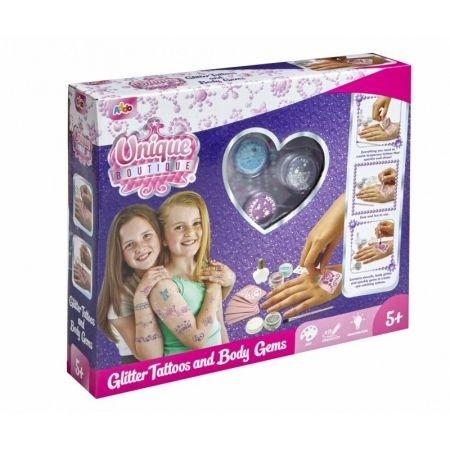 Ozdób swoje ciało błyszczącymi tatuażami. Wybierz wzór z arkuszy wzornika, nałóż klej, zaaplikuj pędzlem brokat i dodaj wykończenie z klejnotami.
