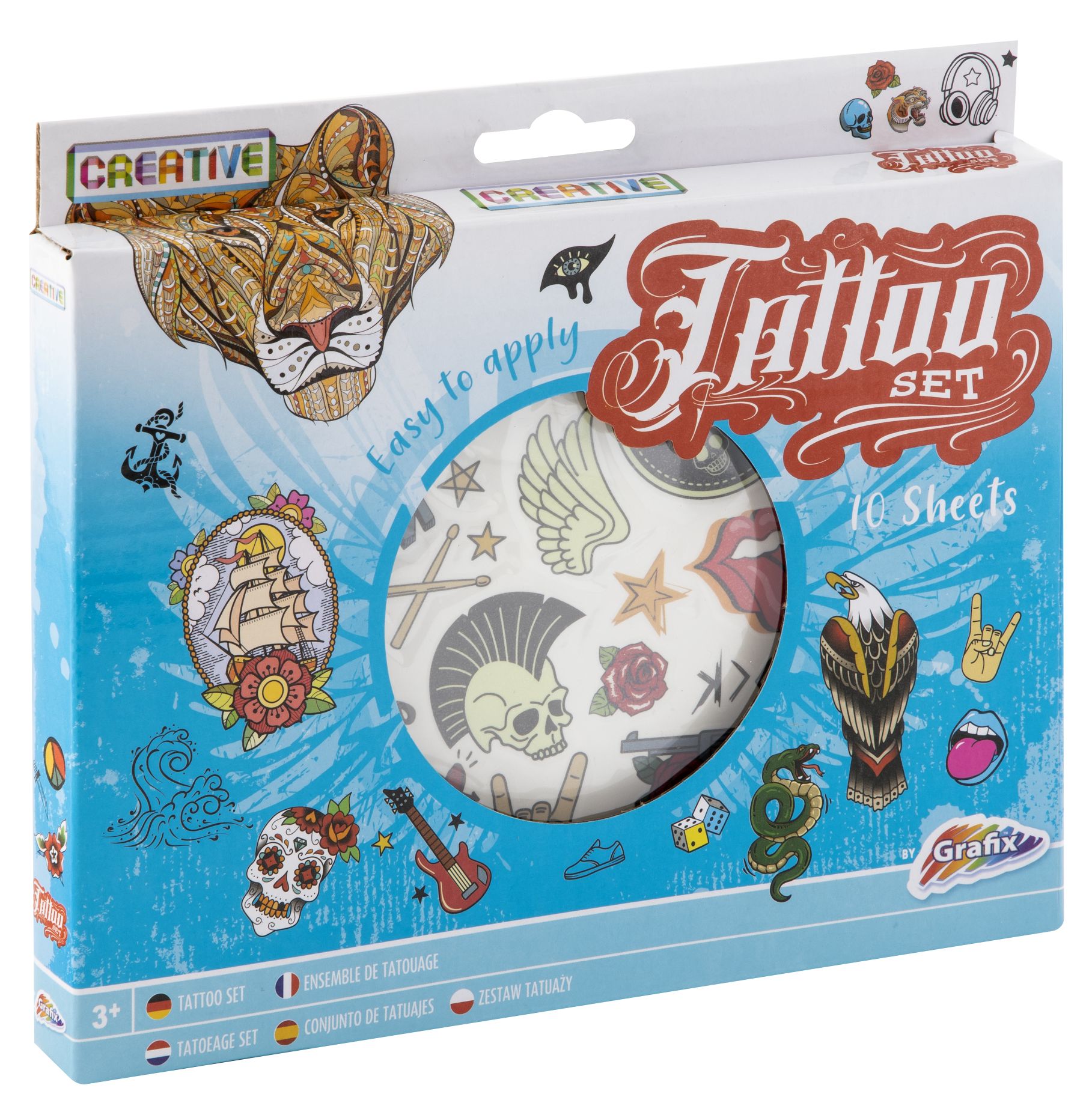 Opakowanie Zestaw do tatuażu 10 arkuszy niebieski