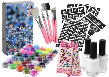 Zestaw do Tatuażu Brokaty Cekiny Serduszka Pędzelki 187 Wzorów Prezentujemy Duży Zestaw do Robienia Tatuaży, stworzony z myślą o dzieciach, które uwielbiają tworzyć i wyrażać swoją kreatywność w unikatowy sposób! Ten zestaw nie tylko dostarcza rozrywki, ale także otwiera drzwi do fascynującego świata artystycznych przygód dla najmłodszych. Zestaw ten to doskonała propozycja na wszelkiego rodzaju imprezy dla dzieci, od urodzin po rodzinne spotkania. Trwałe tatuaże, jakie można stworzyć za pomocą tego zestawu, stają się nie tylko artystyczną ozdobą, ale także formą wyrażania własnej wyjątkowości i stylu. Proces tworzenia tatuaży jest niezwykle prosty i bezpieczny. Wybierz ulubiony wzór spośród bogatej kolekcji szablonów, nałóż delikatnie klej na wybrane miejsce, a następnie przy użyciu pędzelka dokładaj kolorowy brokat, tworząc efektowne kompozycje. Możesz korzystać z różnych kolorów, dodając do swoich tatuaży mnóstwo różnorodności. Zestaw obejmuje wszystkie niezbędne elementy do zabawy, w tym szablony, klej, kolorowe brokaty, kolorowe cekiny serduszka i pędzelki. Daj dzieciom na wspaniałą przygodę z kreatywnością i radością, oferując im Duży Zestaw do Robienia Tatuaży. To nie tylko świetna zabawa, to magiczna brama do świata sztuki, gdzie każdy może być małym artystą i twórcą swoich niepowtarzalnych dzieł! Zestaw zawiera: -187 szablonów -24 brokaty -3 kleje - 6 kolorów cekinów serduszek -2 zestawy cekinów -5 pędzelków Wymiary opakowania: 22cm x 12cm x 6cm Posiada certyfikat CE, ponadto jest zgodny z normą EN71. Przeznaczony dla dzieci powyżej 5 roku życia.