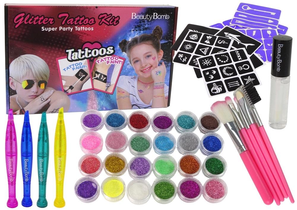 Pisaki pomogą bardziej precyzyjnie narysować tatuaż w 4 różnych kolorach, do tego brokat, będzie pięknie błyszczeć i się prezentować.