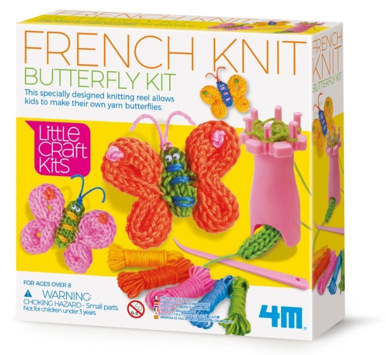 Ten specjalnie zaprojektowany kołowrotek pozwala dzieciom robić własne motyle z włóczki. Zabawka spodoba się dzieciom, które lubią prace ręczne i są ciekawe świata. Obserwowanie sprytnego urządzenia w ruchu sprawi dzieciom wiele radości! Zestaw zawiera 1 francuskie narzędzie dziewiarskie, 1 igłę szydełkową, 5 szpulek kolorowej przędzy, 6 ruchomych oczek i szczegółową instrukcję. Zawartość wystarcza do wykonania 3 motyli z włóczki o wymiarach 8 x 6 cm. Wiek 8+.