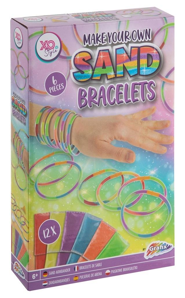 Bransoletki z kolorowym piaskiem. Zestaw zawiera: 6 szt.bransoletek i łączniki niezbędne do zamknięcia i połączenia bransoletki w okrąg. 12 szt. kolorów piasku do ich wypełnienia(2 x czerwony, 2 x żółty, 2 x niebieski, 2 x zielony, 2 x fioletowy, 2 x pomarańczowy) malutki lejek do wygodnego napełniania bransoletek piaskiem łyżeczkę plastikową Zestaw biżuterii do samodzielnego wykonania, to fantastyczny i kreatywny produkt, który pozwoli każdej miłośniczce mody stworzyć niepowtarzalną biżuterię. Przeznaczony dla dzieci powyżej 6 roku życia.