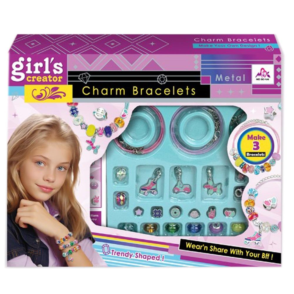 Zestaw składa się z trzech sznurkowych bransoletek, kolorowych beadsów oraz trzech wiszących charmsów.