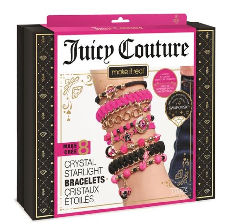 Czarne pudełko ze złotymi zdobieniami w swoim wnętrzu skrywa elementy niezbędne do samodzielnego wykonania unikatowych błyskotek. Znajdują się tam charmsy Juicy Couture zdobione kryształkami Swarovskiego, 132 wielobarwne koraliki, 30 metalowych kółeczek oraz kolorowe tasiemki niezbędne do stworzenia ośmiu oryginalnych bransoletek.