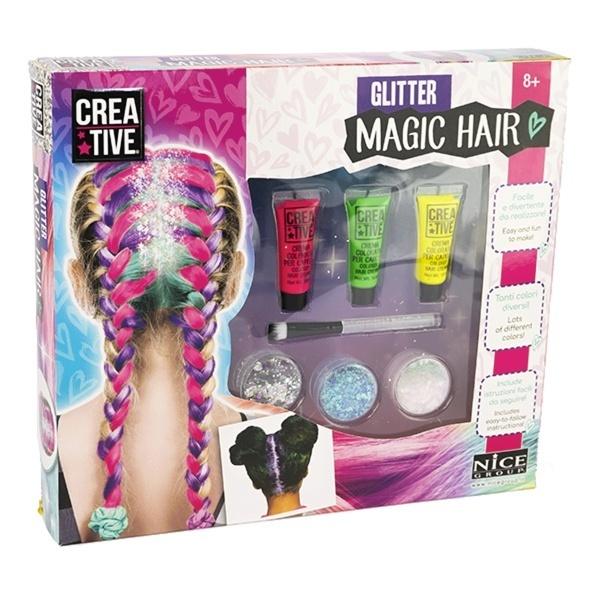 Zestaw do ozdabiania włosów spodoba się każdej małej miłośniczce szalonych dodatków. W zestawie znajdują się barwniki w neonowych kolorach, kryształki, brokat oraz kolorowe gumeczki. Wszystko bezpieczne i przeznaczone do kontaktu ze skórą! Wiek: 8+