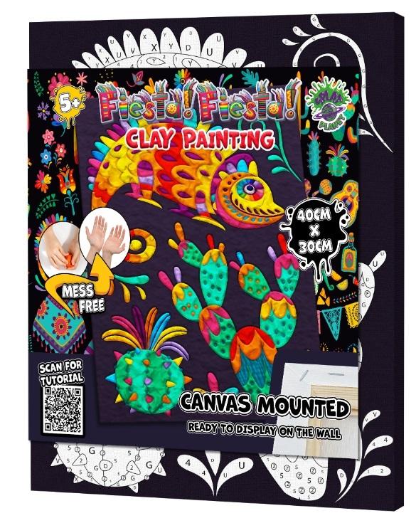 płótno na ramie ze wzorem do wyklejania plasteliną zestaw specjalnych narzędzi plastelina nie brudzi rąk, ubrań ani innych materiałów utwardza się po 4-6 godzinach rozmiar: 400 x 300 mm