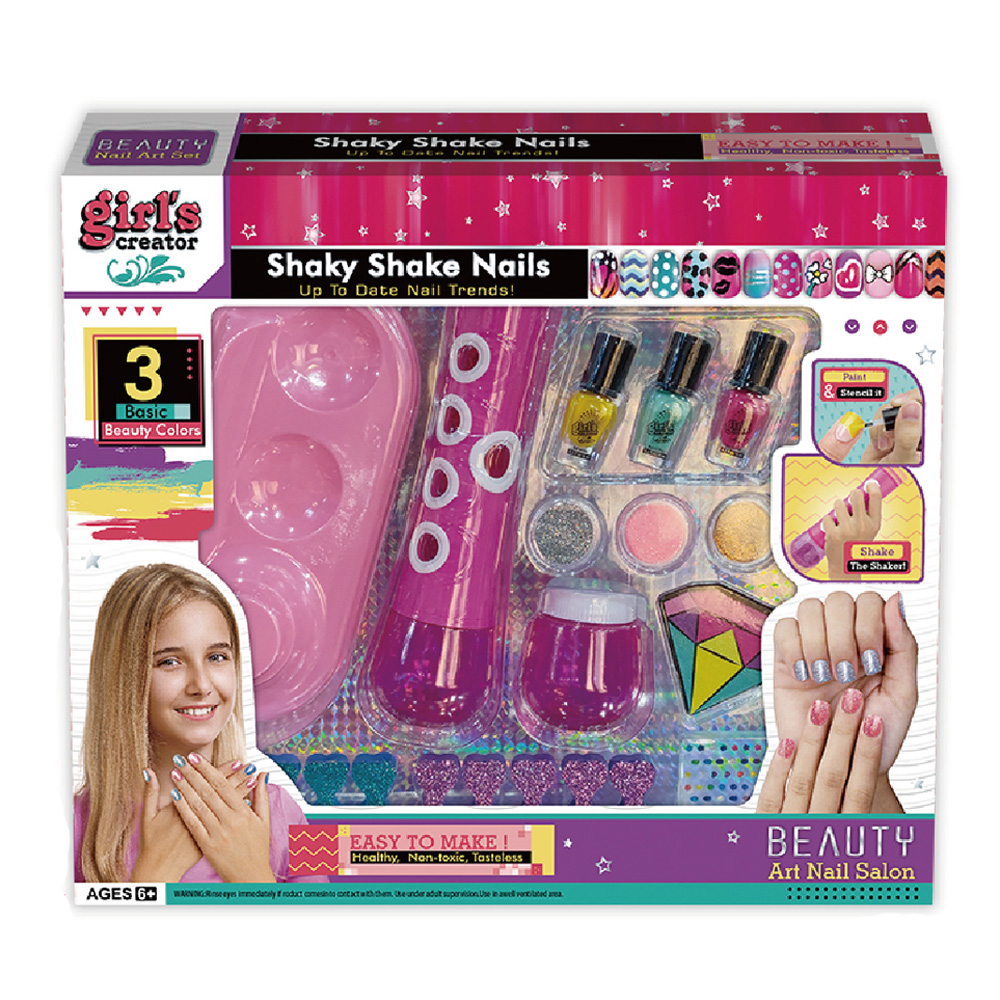 Przesyp brokat do pojemniczka, zakręć w shakerze, pomaluj paznokcie lakierem albo załóż bezbarwne naklejki, potem wystarczy włożyć palce w otwory shakera i potrząsnąć , aby brokat pięknie ozdobił paznokcie .