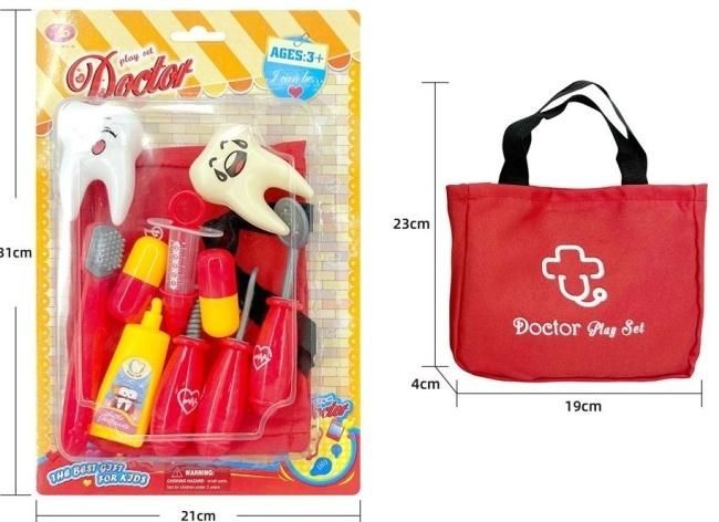 Przygotuj się na niezapomniane godziny zabawy z zestawem doktora! Ten kompleksowy zestaw, zapakowany w czerwoną torbę z wygodnymi uchwytami, zawiera różnorodne narzędzia i akcesoria niezbędne do odgrywania ról lekarza. W środku znajdziesz m.in. dwa modele zębów, szczoteczkę, strzykawkę, pęsetę, lusterko dentystyczne oraz inne akcesoria medyczne, które pobudzą wyobraźnię Twojego dziecka. Zabawka rozwija kreatywność, empatię i zdolności społeczne, jednocześnie ucząc poprzez zabawę. Kompaktowe wymiary torby (19 cm szerokości i 23 cm wysokości) sprawiają, że zestaw jest łatwy do przenoszenia, dzięki czemu mały lekarz może świadczyć swoje usługi w dowolnym miejscu. Idealny prezent dla dzieci powyżej 3 roku życia.