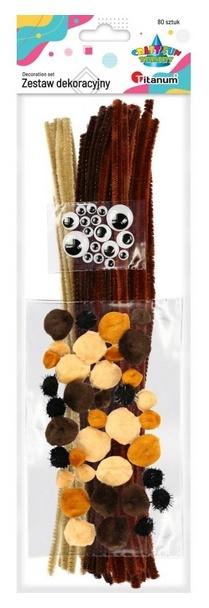 Zestaw: druciki, pompony, oczka 80szt. brązowy.