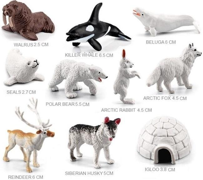 Przenieś się w mroźne, ale fascynujące regiony Arktyki i Syberii dzięki naszemu wyjątkowemu zestawowi realistycznych figurek zwierząt! Ten bogaty komplet zawiera 10 szczegółowo wykonanych modeli, które wiernie odwzorowują charakterystyczne gatunki zamieszkujące te surowe, lecz piękne tereny. W zestawie znajdziesz imponującego morsa (2.5 cm), majestatyczną orkę (6.5 cm), urokliwą białuchę (6 cm), uroczą fokę (2.7 cm), potężnego niedźwiedzia polarnego (5.5 cm), zwinnego królika arktycznego (4.5 cm), sprytnego lisa arktycznego (4.5 cm), dostojnego renifera (6 cm), wiernego husky syberyjskiego (5 cm) oraz charakterystyczne igloo (3.8 cm). Każda figurka została stworzona z dbałością o detale, co sprawia, że są idealne zarówno do zabawy, rozwijania wyobraźni, jak i do celów edukacyjnych, pomagając dzieciom poznawać różnorodność fauny świata. Wykonane z trwałego materiału, zapewnią wiele godzin radosnej rozrywki. Doskonały prezent dla małych miłośników zwierząt i przyrody!