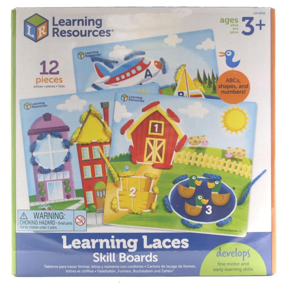 Zestaw do przewlekania, Sznurowania, Tablice, Zestaw kreatywny. Nauka przez zabawę! Learning Resources(R) to producent bezpiecznych, edukacyjnych i innowacyjnych zabawek, którym zaufali rodzice i nauczyciele na całym świecie. Ucz się rozpoznawania liter, cyfr i kształtów, rozwijaj umiejętności motoryczne podczas każdej aktywności sznurowania! Zacznij sznurowanie już teraz! Każda z trzech trwałych tablic jest przeznaczona do doskonalenia sznurowania. Maluch ćwiczy rozpoznawanie kształtów przewlekając sznureczki w kolorowej scenie ulicznej, poznaje litery bawiąc się tablicą z motywem samolotu, łodzi i samochodu oraz udaje się na farmę, aby policzyć jedną stodołę, dwie bele siana i trzy uśmiechnięte kaczki. Zabawne ilustracje przyciągają uwagę dzieci, gdy przewlekają sznureczki przez otwory w tablicach, rozwijając umiejętności motoryczne. Zestaw zawiera dziewięć trwałych sznureczków , dzięki czemu dzieci nigdy nie muszą usuwać sznureczków z jednej planszy, aby rozpocząć zabawę na na innej! Idealne na deszczowe dni, długie przejażdżki samochodem lub w każdym dowolnym miejscu. Zajmują mało miejsca, są łatwe w czyszczeniu, co sprawia, że doskonale sprawdzają się w podróży. Tablica ma wymiary: 23 cm x 24 cm.